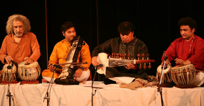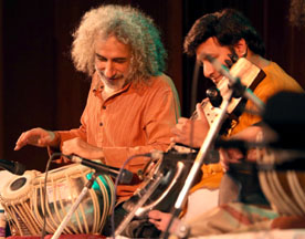 Image Gallery January 31/2018 - India Habitat Centre - Delhi Mukesh Sharma (sarod), Ahsan Ali (saraangi), Arshad Khan (tabla),Mahalakshmi (vocals), Emam (tabla, dumbak), Xavier Peres (keyboard), Kunal Sharma (cajon) All pictures by Swati Chauhan |