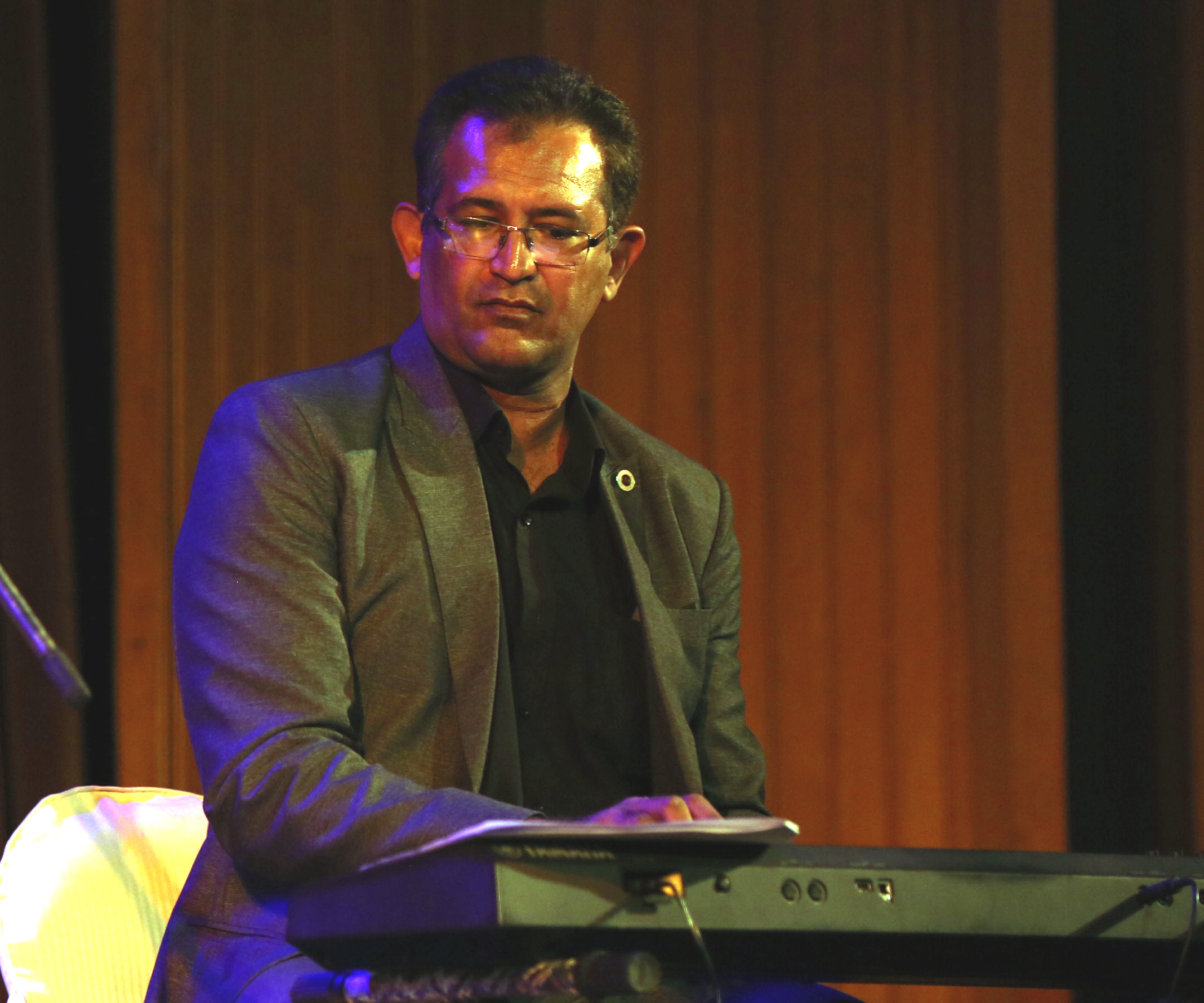 Image Gallery January 31/2018 - India Habitat Centre - Delhi Mukesh Sharma (sarod), Ahsan Ali (saraangi), Arshad Khan (tabla),Mahalakshmi (vocals), Emam (tabla, dumbak), Xavier Peres (keyboard), Kunal Sharma (cajon) All pictures by Swati Chauhan |